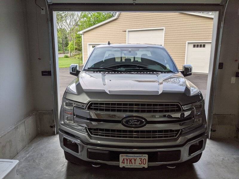 My truck has about a foot clearance on each side with 10' wide doors, which is comfortable.. My old house had 9' wide doors and I had to be extra careful pulling in or out.