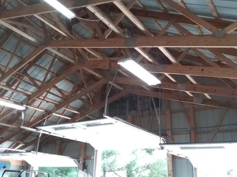 Make sure to have a central ceiling fan as well to move air around the shop....makes a huge difference when heating. And put in lots of lighting, I have 3 banks of 4 - 8' T8 lights, each group of 4 on it's own switch.