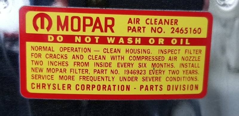 Correct, no engine call out but there would have been a small decal about 2” x 2” that referenced something about the air filter.