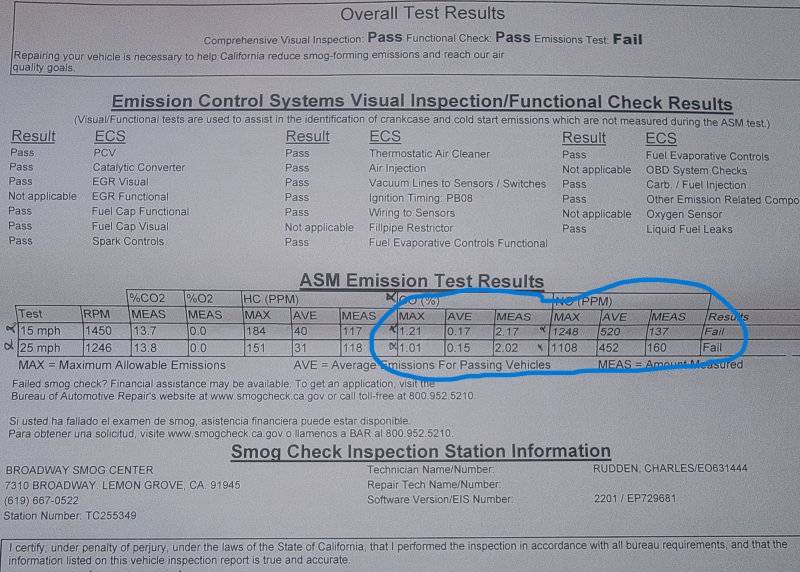This is the second sentence in the original post. "I failed CO% on my smog test for the second time "