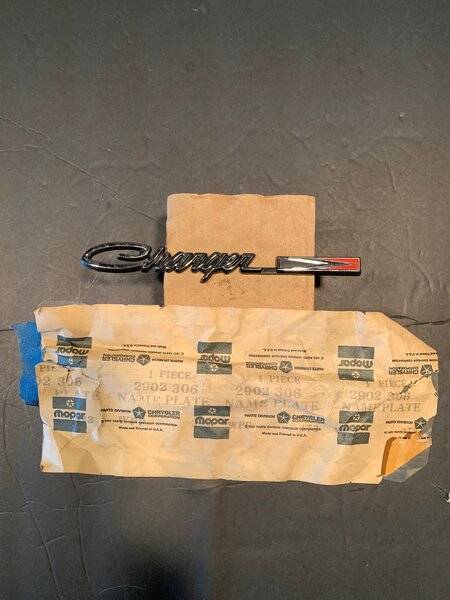 Let's keep the ball rolling. Here is an NOS Charger emblem part number 2902306. Says it fits 69-70 Charger rear tail panel emblem. These year B bodies are not my thing so I hope that is correct. Very nice though it looks like wrapper goo or my grubby finger prints on it. I will let the new owner clean it to their satisfaction. I will cover shipping in the continental US.