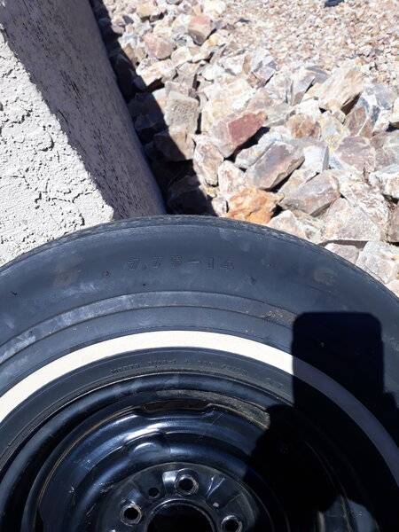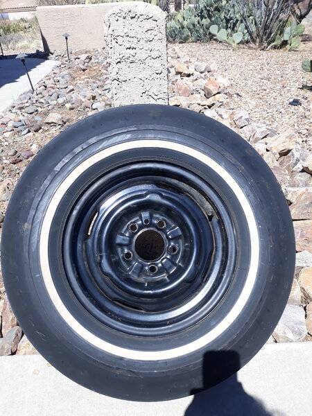 The original spare is still in the trunk , a 7.75-15 Good year Power Cushion whitewall