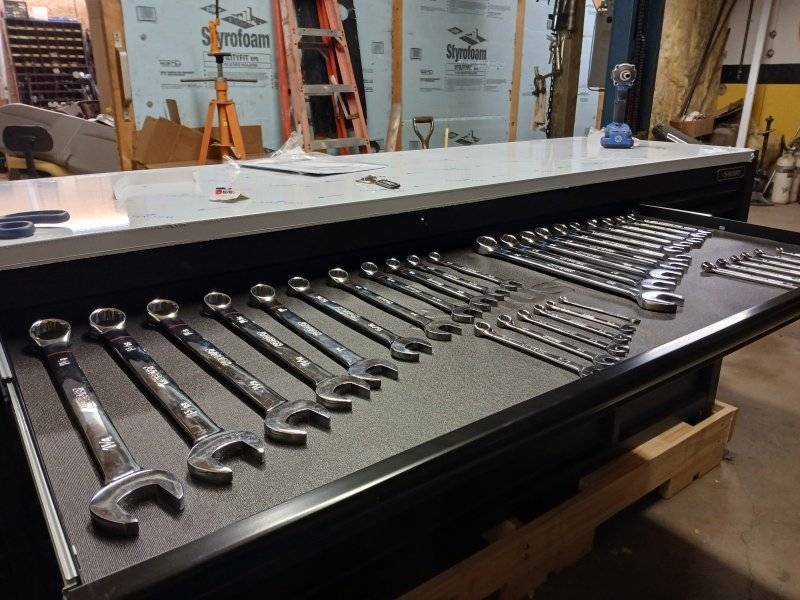 Have 3 rollaways with 2 having mid and top boxes and the one without a mid has a large top box that I need a step to look into it! Then there's the 'clean' room (that ain't so clean these days) that has a wall of cabinets with a 10 drawer section that's full of tools and 'stuff'.....I have (2) Craftsman boxes from the 1990's back when they were not quite as flimsy as now. One of them is ball bearing latching drawers, I have that at work yet with a matching top. The one at home is overfull and has a top with the door on top that props open.