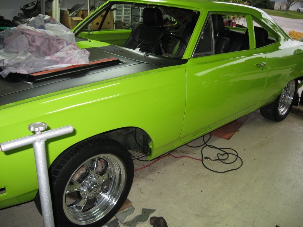 I am building a Pro Touring 69 Roadrunner, 2013 / 6.4 hemi with the 6 speed manual transmission, the body is already painted and I have mini tubbed the rear, added disc brakes to the rear and started installing newer challenger interior to the car. I have not completed the floor replacement or finished the tunnel, I hope to finish the build soon. I am building this car to be a driver and hope to do upgrades to the handling in stages, the drive shaft is coming this week, I went with American Racing wheels, 18" for now. I am in Port Saint Lucie Florida and cant wait to get this car on the road. My first car was a 69 Road Runner and its Mopar or no car for me, this car is fuel injected and has 3" full exhaust with an Xpipe with large mufflers, i just installed frame connectors and I think about running this car in autocross as the handling gets to that point, I expect the fuel mileage to reach 20 mpg at least once LOL. I go to the Garlitz show every November and this year my car should be there. Thanks for checking us out, Richard in PSLView attachment 336058 View attachment 336059 ecking me out, Richard in PSL. View attachment 336057