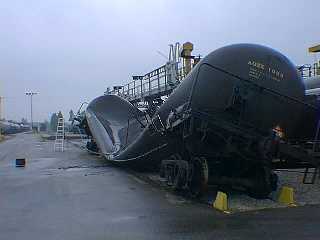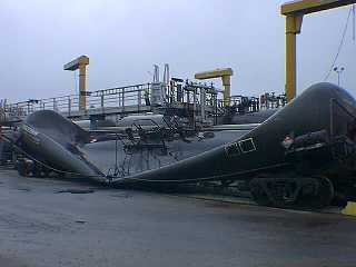 Here is one of those Propane tankers that were off loaded and was not permitted to cool down after before recapping the turret..... Basically it imploded overnight as you see it