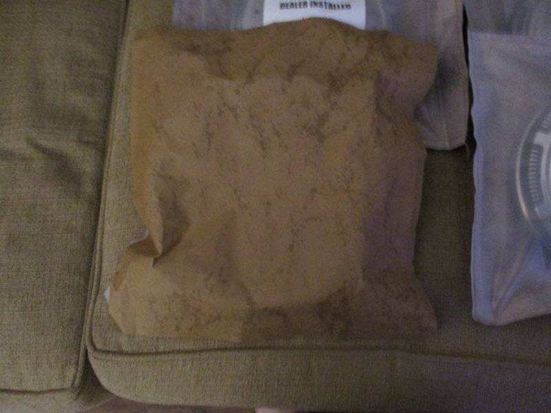 JW and Angela Hames.....Whom I mentioned earlier do true OE Mopar restorations. Called Hames Restorations. While scouring their dart I noticed the "dealer installed" items packaged in the Dart's trunk. I have heard of this but never seen it done correctly till now...So I asked the obvious ? and they were willing to provide me with correct "dealer installed" packaging for a few items of mine. So I sent them my antenna and dog dishes for Angela under JW's supervision to package these and apply the stickers.