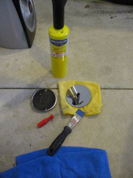 I pulled out the big balls MAP gas.....Putty knife and a 90 degree pick......I laid the mirror face down on the concrete and ran the torch around the perimeter until I heard "crackling". There is a 1/4" hole on the backside and i used the 90 pick and worked its way in slowly without scratching the mirror. Then I put the heat to it again. So with the tip of the pick facing north towards the edge of the mirror. I her so carefully pried back towards the center. It opened a gap between the mirror and the housing. Then came the putty knife.