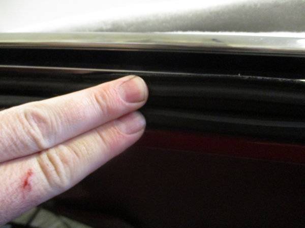 ####Notice how the original/NOS strip has a moulded section that laps over the 1/4 glass when rolled up. The reproduction does not have this as a comparison picture shows this####