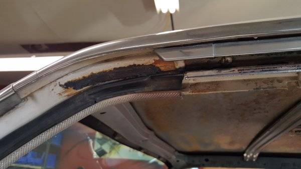 Question on the roof rail weather strip, Is yours glued at the leading edge or is there a metal plate inbedded and you use screws to fasten? My '62 was glued and all of the aftermarket ones have a plate inside. You have to shape the end to fit the contour and then use glue to attach. Just curious to what you have.