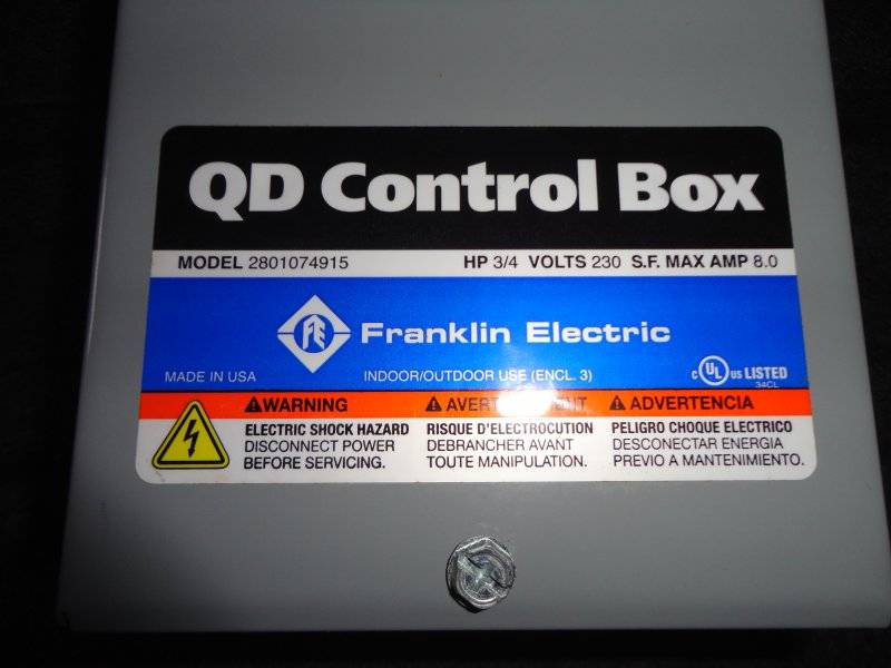 I have a brand new Franklin Electric 3/4 hp submersible deep well pump control box Mdl #2801074915. $75 cash or USPS MO to your door from 3248.