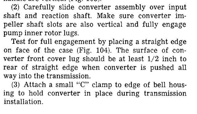 Mopars have the shortest distance in the bellhousing for converter length. Many race cars have a mid plate, and you have the converter built to account for it, a longer pump drive installed. I have gotten several performance converters that had incorrect pump drive heights. If pump drive is too long it can break the pump drive lugs.