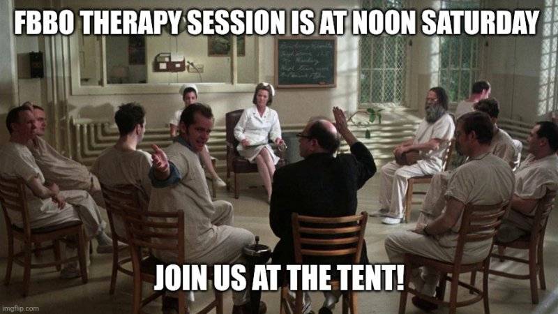 Group therapy!! LOLI really like hanging out at the FBBO tent. I wonder what that indicates.