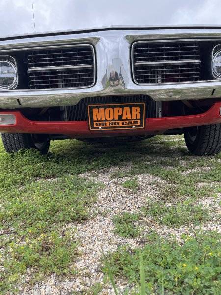 This Coronet R/T has black painted hood scoops, front hood pins, and fendertop turn signal indicators. I wonder if it has A40 code on build plate, as discussed on another thread. It should not have Hemi sign on lower front fender, however, as it already had HEMI call-outs on the hood scoops. Missing the stainless sill and wheelwell moldings. Still, a very nice R/T. I wish it was parked at my garage.