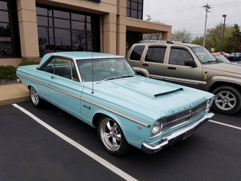 This reminds me of the first in a long line of Dodge's I have owned. Mine started out as an Ontario Provincial Police cruiser, equipped with a 313 and column shifted 3- speed manual transmission. Being a police car, it also came with 15" rims with the the small pick-up truck hub caps and 11" brakes. By the time I bought the car for $500 in 1967, it had been repainted the same colour as the pictured car. I replaced the original tired power train with an almost new 383, 4-speed pulled from a rolled over Belvedere. I paid the wrecking yard another $500 for this. I installed some tall blackwall tires on a set of chromed, reversed rims (all the rage up here at the time). Although I always thought I would install a Maxie hood scoop, I never got around to it. I enjoyed this car until I bought my new 1969 SuperBee. Thanks for the memories!