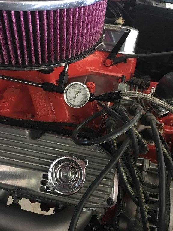 Thanks for all the words of wisdom. I will toss in a different gauge to confirm issue. I'm running a Carter "street super" #6903 mech. pump which is supposed to supply btwn 6 and 7.5 psi. It is new (along with just about everything else under the hood, including the $30+ Earls fuel gauge).