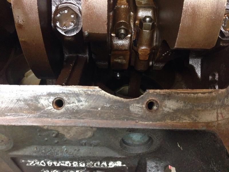 Thanks to outlaw525 (Amazing guy). I installed the correct oil pickup and oil pan tonight. While cleaning and inspecting I noticed some damage to bottom of the block. I can't see any evidence on the connecting rods. Is this just a defect? Once again I am amazed at the support and advice yall give. This is what I have needed for years.