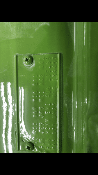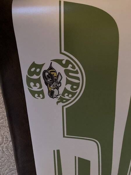70 FJ6 Bee fender tag. This car was born with a 383 backed by a 4 speed but engine and transmission was long gone before I found car again. It has a ledger green C stripe as well and white interior.