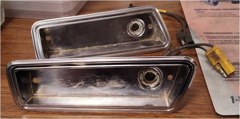 Looking good brother!!!It's almost spring time in northwestern Canada and I got around to cleaning up some used front sidemarkers and restoring my original reverse lights. As Grendel will be a driver, I'm mainly concerned only with visible appearance of these parts, I won't be replacing with brand new repros. The sidemarker chrome had the usual crud and decades-old wax remnants inside the grooves. I cleaned that up with 0000 steel wool, now they're presentable again and ready to reinstall. My reverse light housings were a tad more work but at least the visible stainless parts clean up nicely with the steel wool. Here's a before-after showing one of them; the other will definitely need more attention.