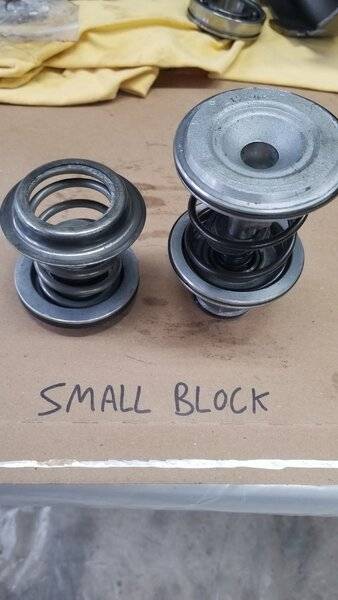 The shaft end play (spec: .010" to .037") of the small block is .018", while the big block is .030"
