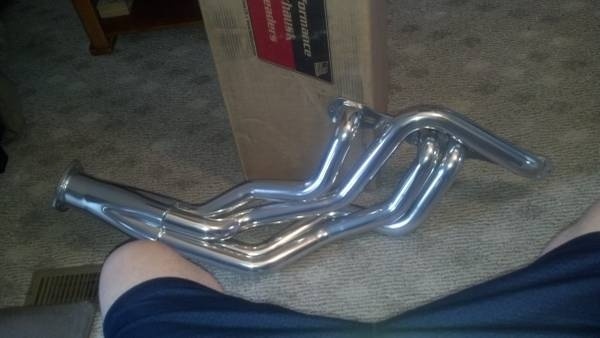 It has Hooker Super Competition Headers on it now, along with ported 906 heads. The car runs 12.90 at 105 MPH with this head/header combo. The 906 Heads and Hooker headers will be for sale in the near future.