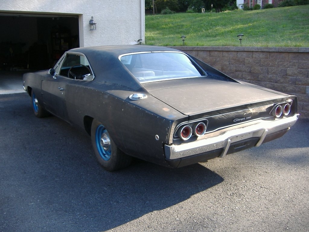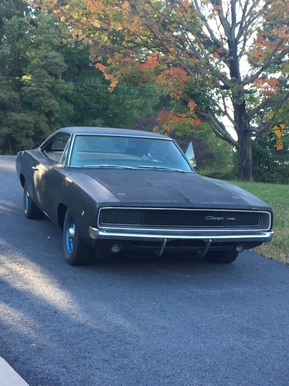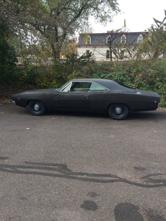 Sorry crappy cell pics, is all I have for now. Car is original EE1 Blue. Some of the pics it has B5 blue wheels on it. Side view is EE1 blue wheels. Its a H-code 4spd car. Riveted quarters are just temps , I have full quarters for it. A lot of work to do and no time. Its still 383 but non numbers matching. It was spray bombed with a can long ago. Its a Road Kill car with a grill