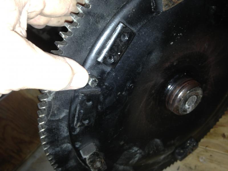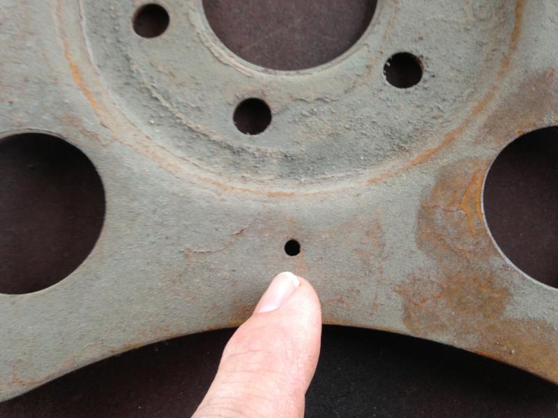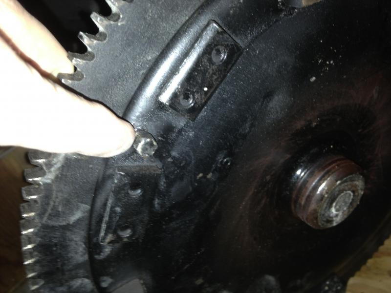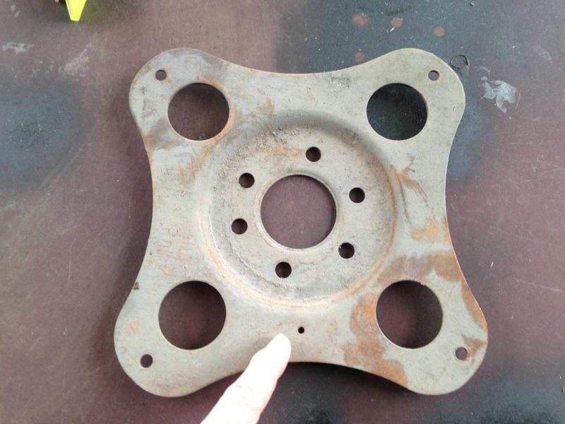 Here is a picture of the hole in the factory flex plate I mentioned above. This hole goes just opposite of the drain plug on the converter.