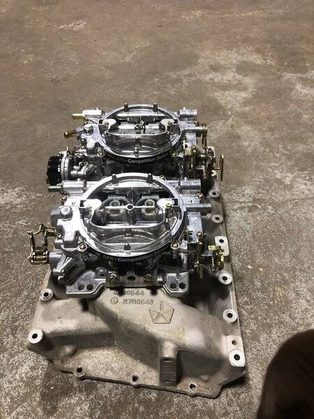 I have a set of complete cast iron 426 hemi heads with rocker arm assys $4000. Aluminum 2x4 hemi intake manifold with two brand never used carter carburetors. Photos of the heads upon request. $1300. 337-224-7769
