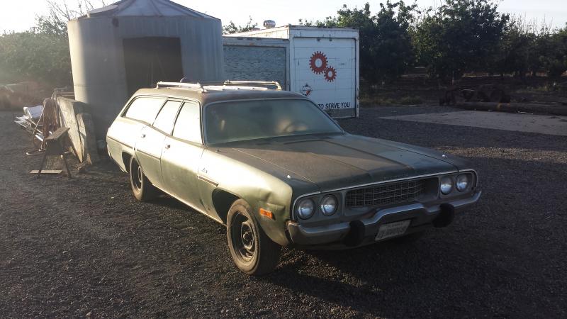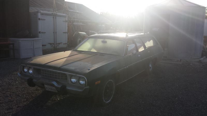 Howdy. Picked up a 73 Satellite wagon last weekend. I WAS very excited until I went to the DMV, and found out it was still on the system from 2002. So about $800 in back fees. Anyways, I'm going to suck it up, and handle it. LOL! Besides that, Its a complete runner. Naturally, after being off the road for so long, there will be a lot of tune-up, and rubber hoses to replace before I feel safe to take her on road trips. Luckily, already have disk brakes, but thats about it. Rubber carpets, no A/C. Aside from what I mentioned, I'd like to tackle the suspension first, basically chuck the FirmFeel catalog at it, and find a 8 3/4 axle. Hopefully find some early bumpers/brackets to suck the bumpers back in where they belong. Eventually swap in a 5.9 Magnum and A518 trans.
