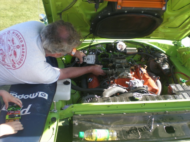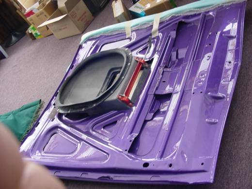 The purple car is mine & i started with a mint rustfree 70 Charger hood that i bought from a guy in Wisconsin, for $100, that had a big 2 foot hole cut in the center for a 2 4BBL tunnel ram. Then i bought a complete 70 Runner hood from a guy in Brockville Ontario, for $1,000.00, with a real nice skin & the inner structure looking like swiss cheese. The secret to grafting the two together is, the vertical pinch weld along the back of all these hoods is exactly the same on 66-70 B Bodies. Just make sure that the skins line up exactly, down over the back of the hood, where it matches up to the cowl vent panel, & your airgrabber setup will sit correctly on a factory breather, like a 70 Runner factory hood. You will also need to cut the extra supports out of the Runner hood structure & weld them onto the Charger hood structure, for the much needed airgrabber skin support! :buffer:
