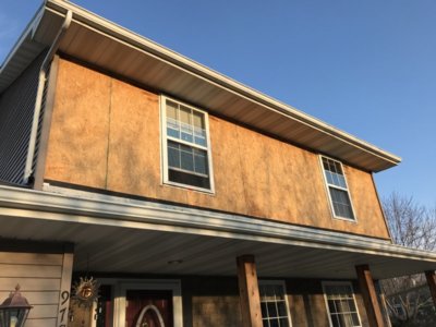 Then Tyvek the whole second story with wifes help and hope she doesn’t fall off the roof or gets
