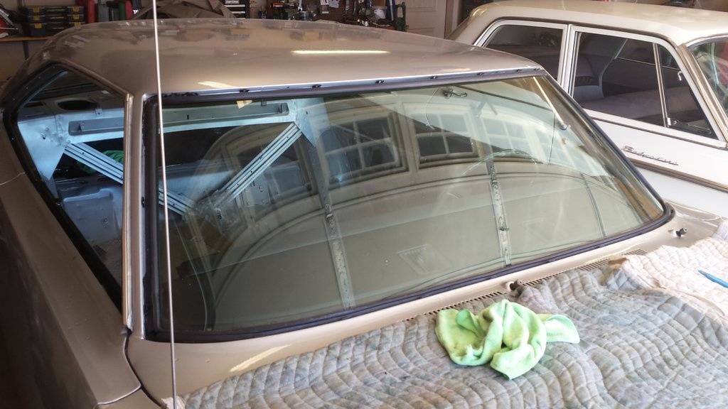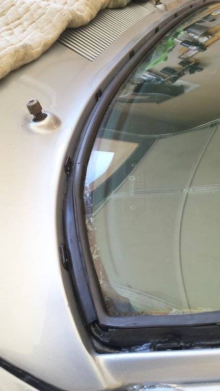 The gasket gets put on the car first. This pic shows the bead lock (very easy to tuck in after the windshield is in place. Notice the sealant before cleaning up...