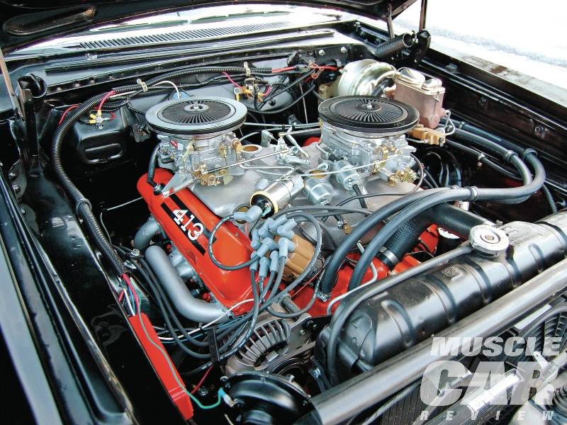 Now consider this tasteful restoration with the high-rise Max Wedge headers. It's not numbers matching, but there's an attempt at an original look here. The factory manifold and the dual master upgrade just barely clear each other.