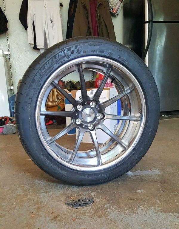 We did a quick try of my rear wheels on Devin's car to see if 305's would fit and they did and then did a quick rubber swap as I bought some more new tires with just a little more sidewall. I didn't get a lot of pics but here's a few