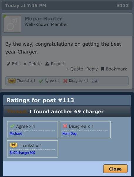 This is the best news in the thread so far. I didn't want to offend you yesterday after seeing the pics, so I kept my mouth shut. Even in todays market, this is not a 20K car, and I would have told you to not pay more than 10. Worked out just perfect - great minds think alike, huh? Non R/T car with no fender tag gives you the option to build it however you want imo. Just me, but I always like to stick with colors that were available on that model year. Yes, purple is a cool color, but to me doesn't look right on any cars older than a 1970. Anyway, congratulations and enjoy the build. You did goodI didn't pay $20000 I got it for $10000 because of basically what you guys pointed out !