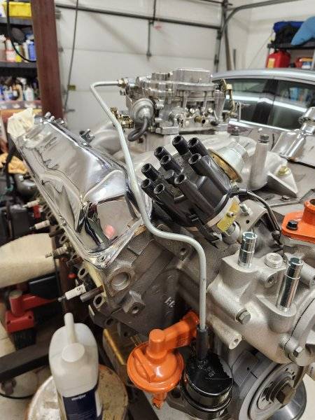 This, because you need the support and seal for the bolt and tube eyelet. Then another seal for the spacer and carb.Maybe even smarter and much easier. 2.25" tube with a -20 inlet at least 1/2" deep, and -20 male end about 1/4" long as shows on the bolt i posted. I would have to measure the diameter of the flow hole and the eyelet for total diameter.