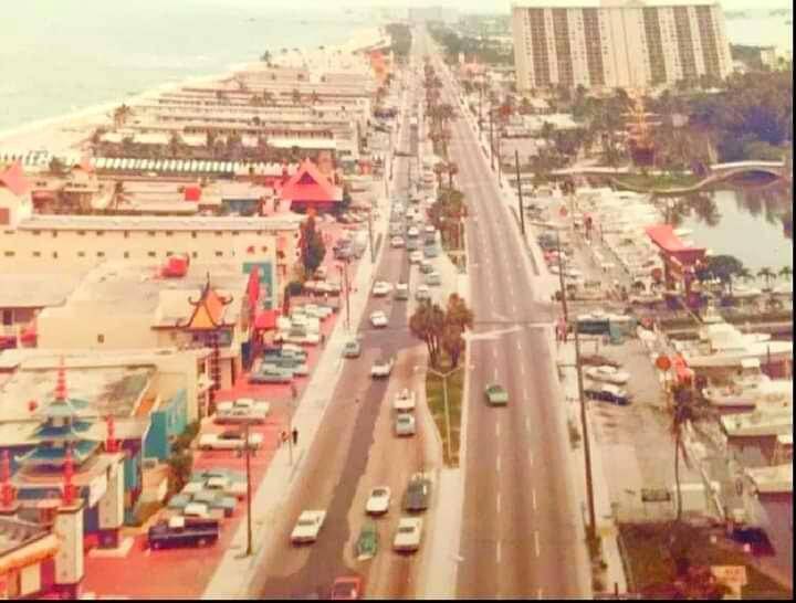 I have no idea of what time of day this was ,or even the year. It’s hard to see the individual cars, maybe late sixties? Castaways motel used to be on the right in picture and it appears a number of cars were turning in there. Charter boats lined up docked close to the road. 163rd street causeway linked mainland at this location and there was a lot of nothing south of that high rise for a ways. When I was about 16, my cousin and I used to hotel ‘hop’ to the north of here (not seen in pic). Those were the days, growing up in the fifties and sixties, Miami used to be ‘paradise’. No desire to revisit.