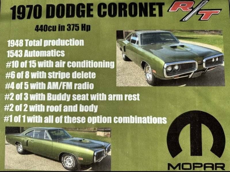 Would have to be around the least desirable optioned 70 Coronet R/T. It's still a Coronet R/T.