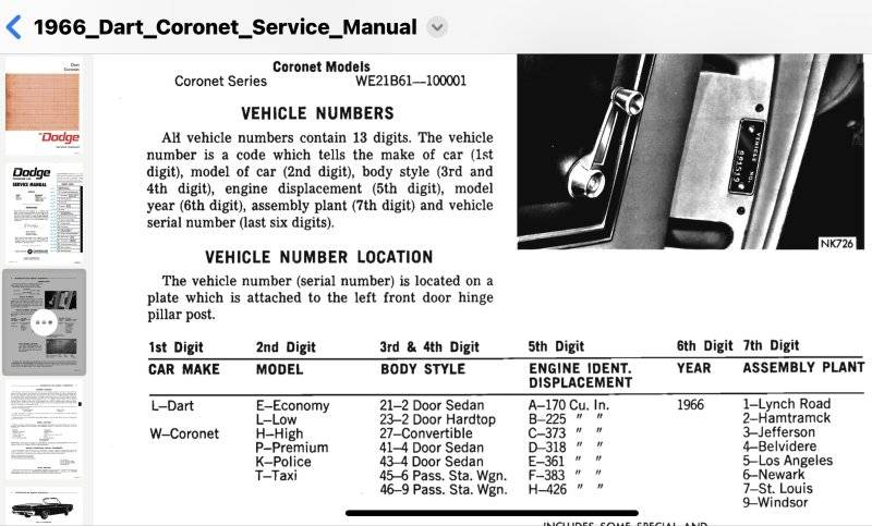 And here’s from the 66 Dodge Dart and Coronet Service Manual:
