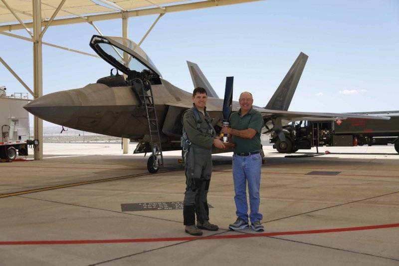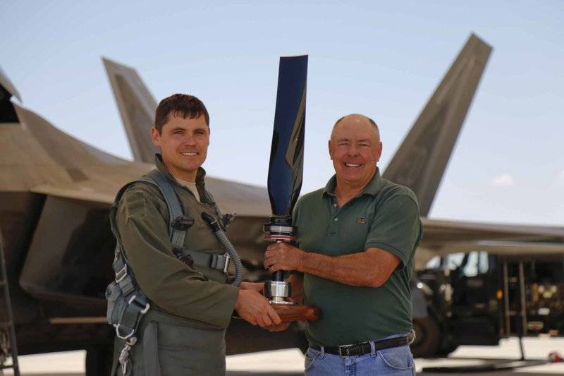 Awesome. Nice pictures.Me presenting Jimi "The Bladecutter" Stevens' Prop named "2-Stroke" TO the Edwards AFB F-22 Flight Test Team Commander "Split"