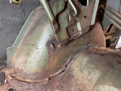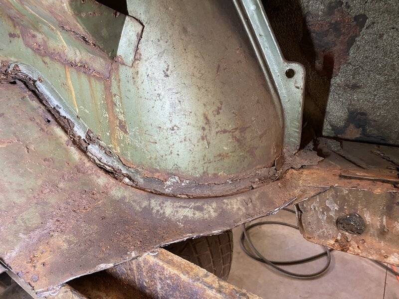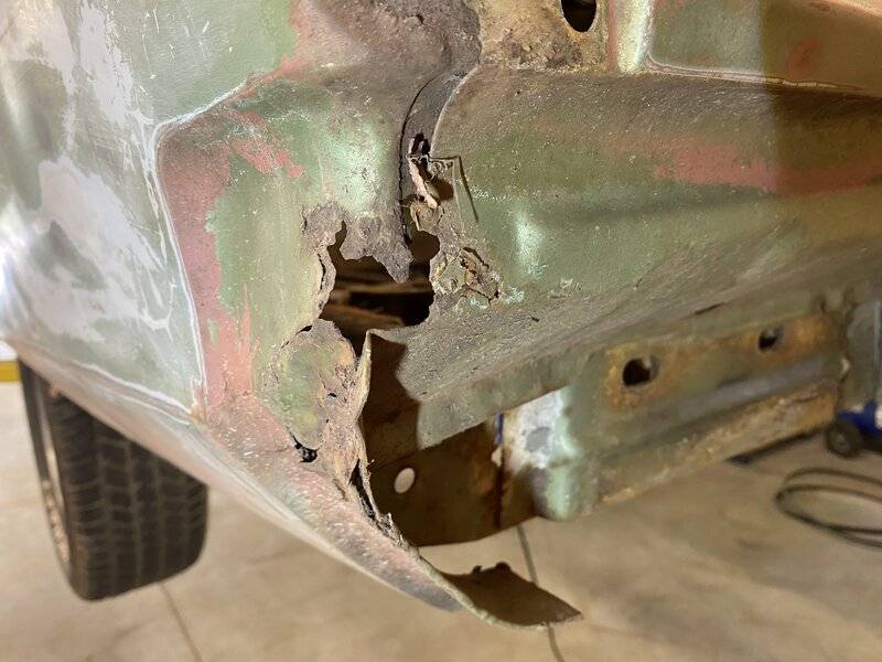 Tip: where the drops meet the trunk pan....drill the plug weld holes in the trunk pan, not on the drops: it leaves more room for the welder and grinder..... where the trunk pan meets the inner wheelhouse, drill the holes in the wheel house for the same reason. If the inner wheelhouse is rusty swiss cheese, just replace the bottom inch or so with new metal