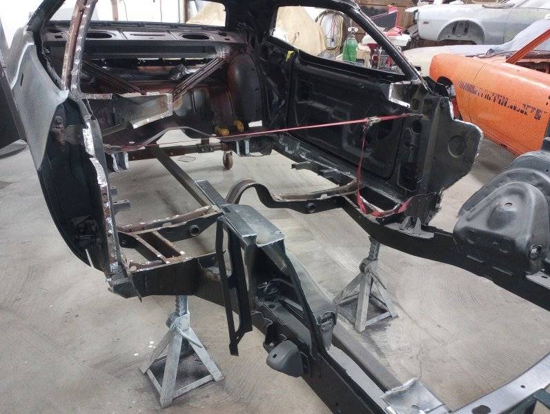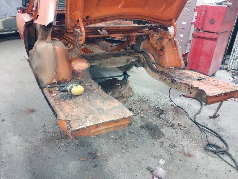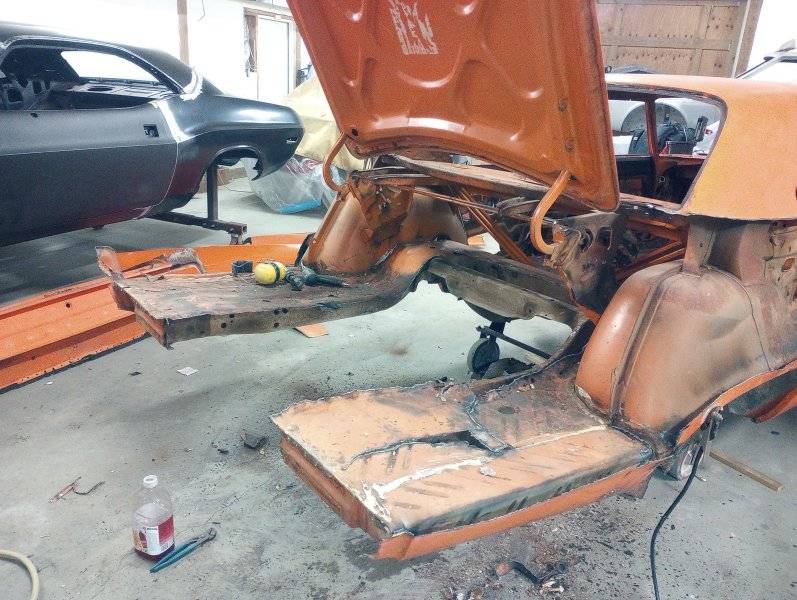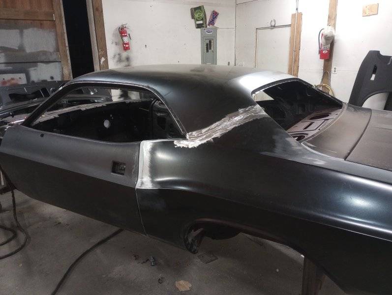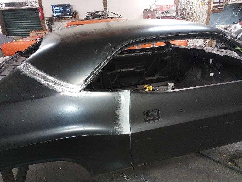 got the back of Challenger welded up and the roof on........ also busted into Jeff's car pretty good