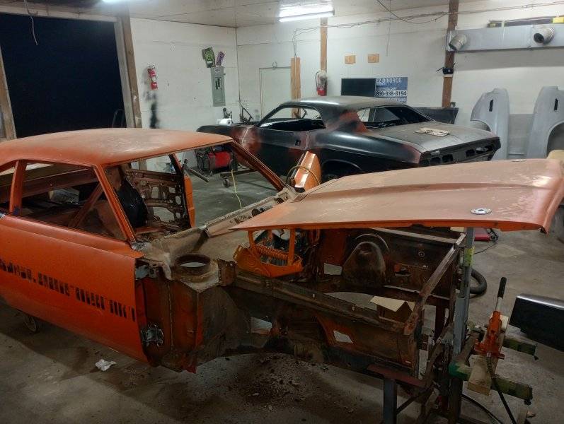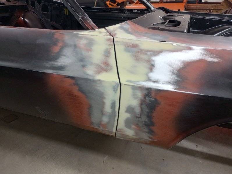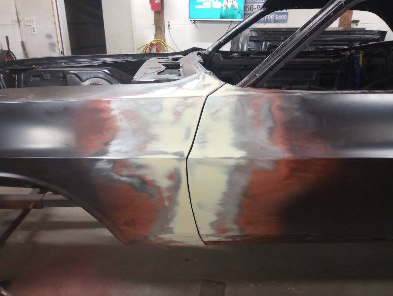 Well at least no sand will be stuck in Jeffs quarter panelsfloors welded in the challenger, actually they been done at least a week ago...... finish fit and minor bodywork on the doors and fenders done; fenders can finally come back off