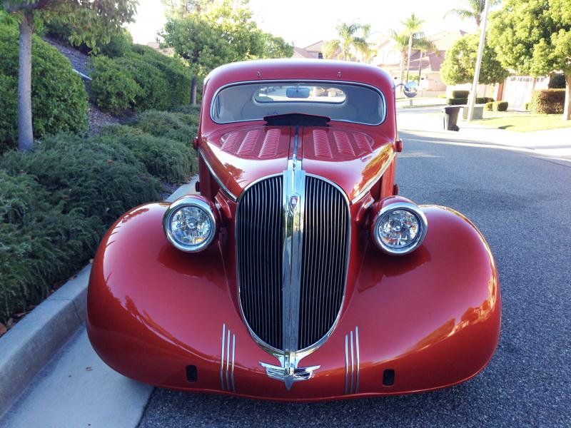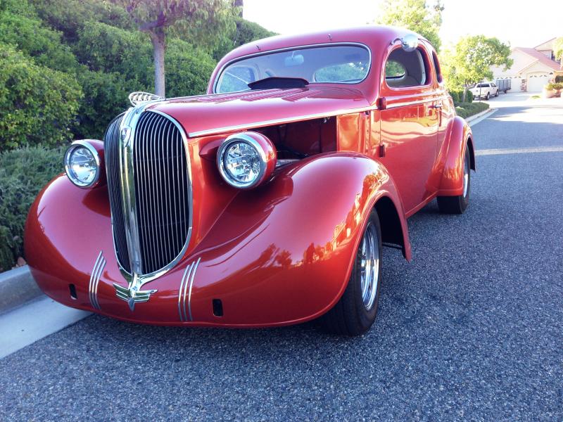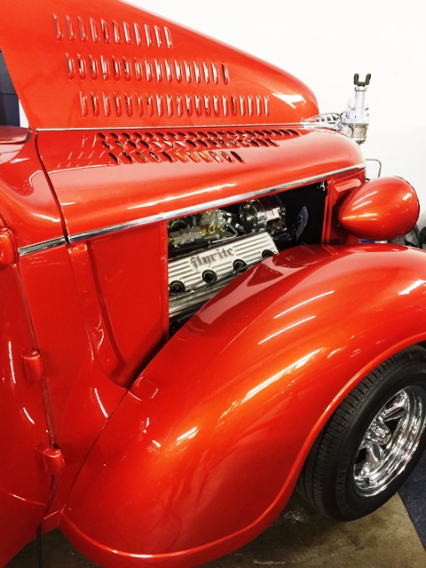 Just got the hood louvered, painted and installed on our 38 Plymouth Hemi P6