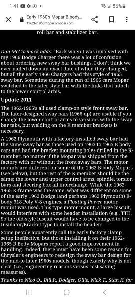 The 66 K's set the engine back in the 65 and older but don't know just how much older. dvw above knows and like Bold and Old proved in post #2, the 65 and older K's will put the engine forward in the 66 and up cars.If I remember correctly the '66 and newer K frames moved the engine back. However, stated earlier in this post they move the engine forward when used in a '62. Can someone provide a definitive answer? I have a '69 K frame I was planning on using for a big block swap and now am wondering if I am going the wrong direction.