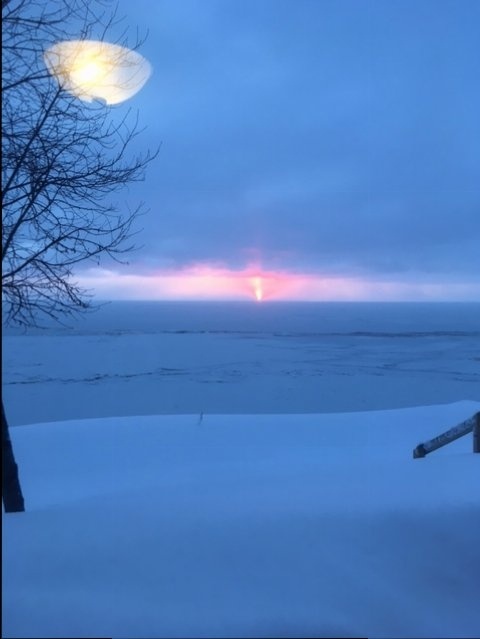 We were standing on Lake Superior two weeks ago. We were riding snowmobiles out of Paradise. Rode up to White Fish Point Light House... went out on the lake.