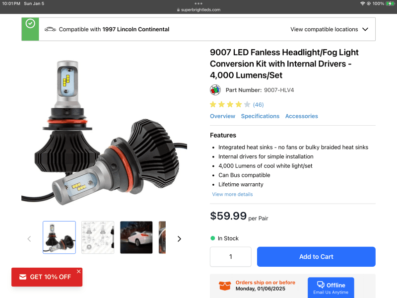 If you decide to go the LED route, the $500 they want for that kit is ridiculous. I did my lincoln for $80 minus the headlight housings. This is what I got from superbright LED. Like I say it works in my lincoln but that car has a more sophisticated charging system than our older cars. I got the headlight conversion wiring harness from cracked back for around $180 IIRC. I highly recommend doing that over the LED. It’s guaranteed to fit and make your headlights brighter. Install takes about an hour. The harness comes plug and play and is guaranteed to work. You dont have to do any wire splicing or modification to your car. The harness can easily be removed if you want to go back to oem if its a number matching car.