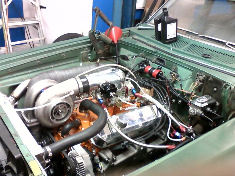 It may be 1 lb of boost away from blowing the tires off? We're leaving the line at 1 PSI. He has a digital boost controller and timing retard. So far it hasn't needed it.