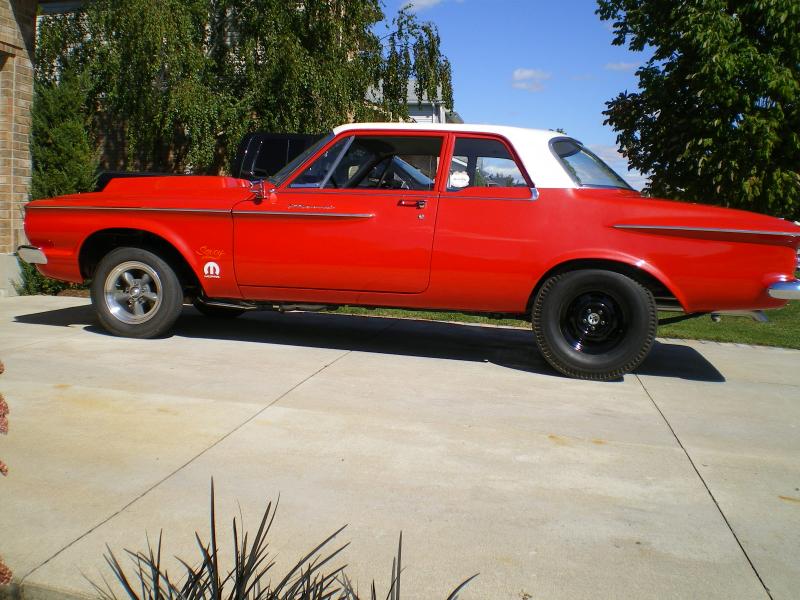 If you mean that Dart wagon its not mine. I just found the pic of it on the internet. I took this pic at the track a year or so ago of this really sweet 62. It ran mid 11's and still used the factory exh manifolds. Ron