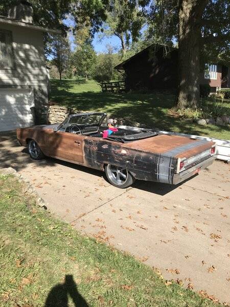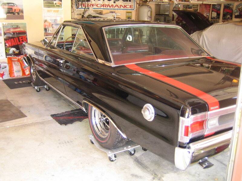 67 coronet 500. 440, 4 speed OD trans. Charger flip top on left (top) quarter. 69 R/T scoops. My design Dodge Bros emblem on back quarters, with matching emblems on spinner caps. 1930's Dodge Bros hood emblem (not visible yet). 67 R/T louvered hood scoop. 66Charger bucket seat front and rear, full length console interior. TTI headers and exhaust, with 69 Road Runner tips.
