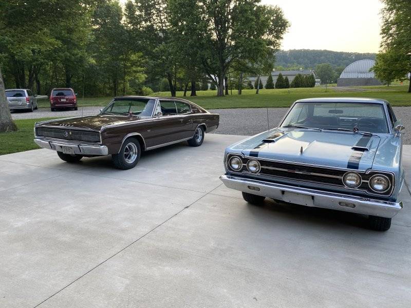 My '66 Satellite, same friends new to him '67 GTX he bought last year . Taken at the Summernites cruise in Somerset Ky April 2024 during my trip back east